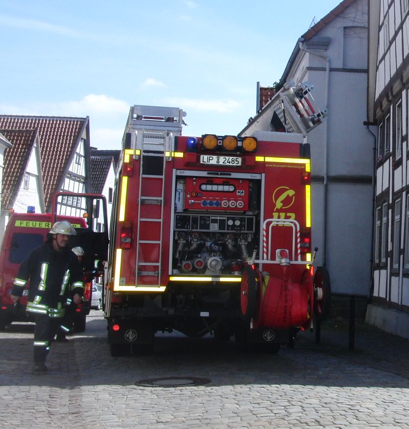 Eingesetzte Fahrzeuge: ELW Blomberg, HLF 20, LF20, DLK 18/12, RTW