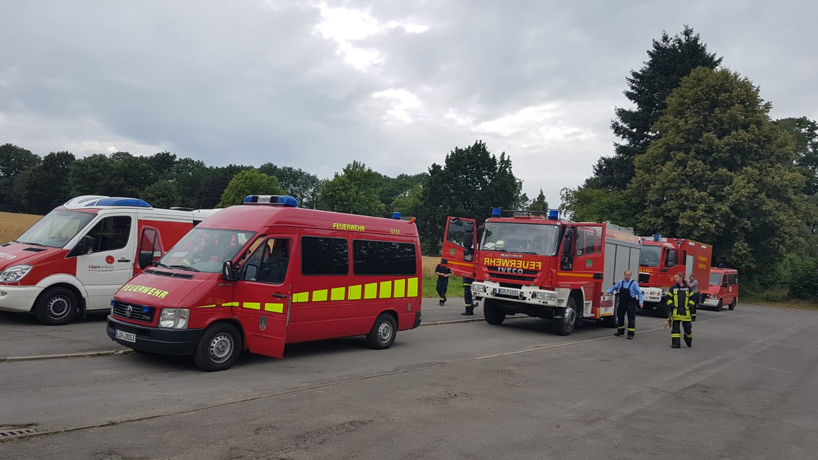 Eingesetzte Fahrzeuge: ELW 1 Blomberg, LF 20 Blomberg, MTF Blomberg, GW-L2 Barntrup, MTF Barntrup