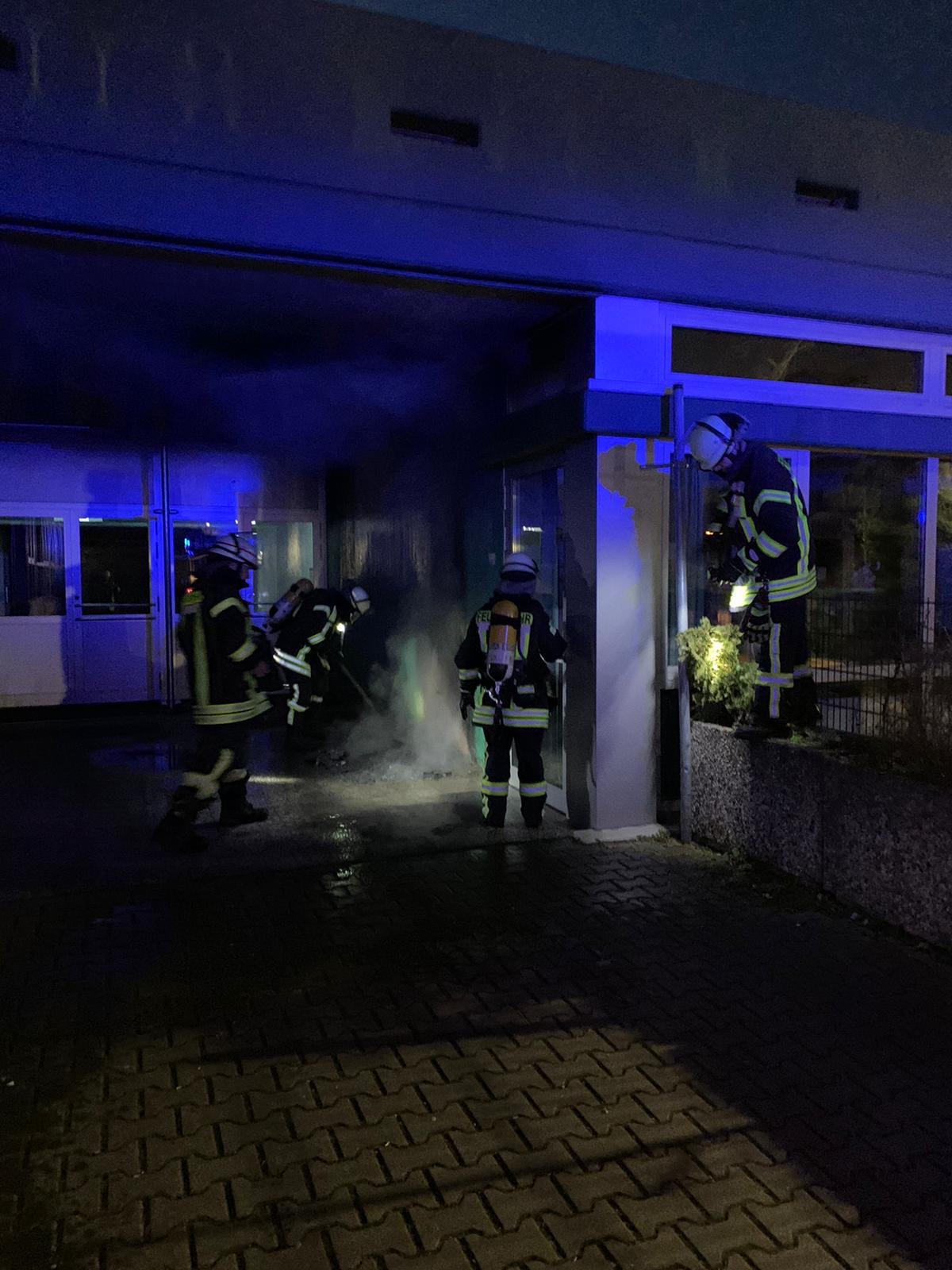 Im Blomberger Schulzentrum Nähe des Aula-Eingangs brannte eine Mülltonne am Gebäude. Wir löschten die Überreste mit der Schnellangriffseinrichtung des LF 20 ab.