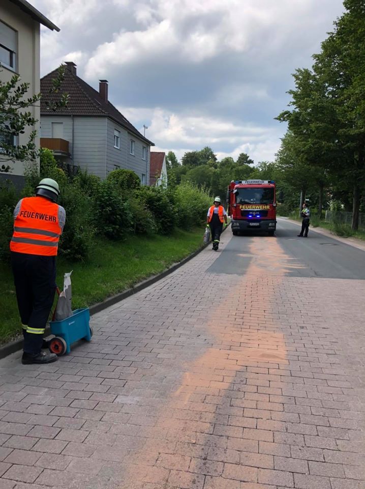 Auf der Wellentruper Straße war ein Schlauch einer landwirtschaftlichen Maschine geplatzt. Dadurch entstand eine ca. 500 m lange Ölspur.