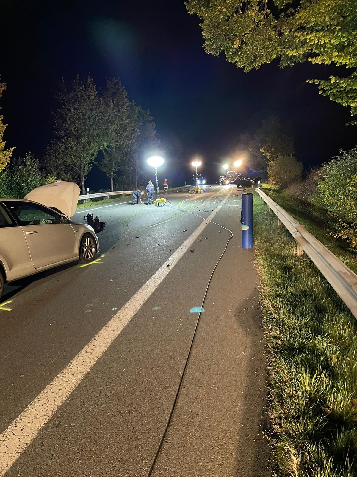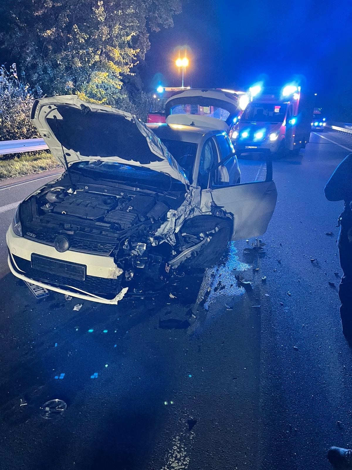 Dennoch wurden 2 Personen schwerverletzt, sowie eine Beifahrerin leichtverletzt in umliegende Krankenhäuer transportiert. Unsere Aufgabe bestand darin die Unfallstelle abzusichern, auszuleuchten sowie den Brandschutz sicherzustellen. Anschließend reinigten wir die Fahrbahn.
