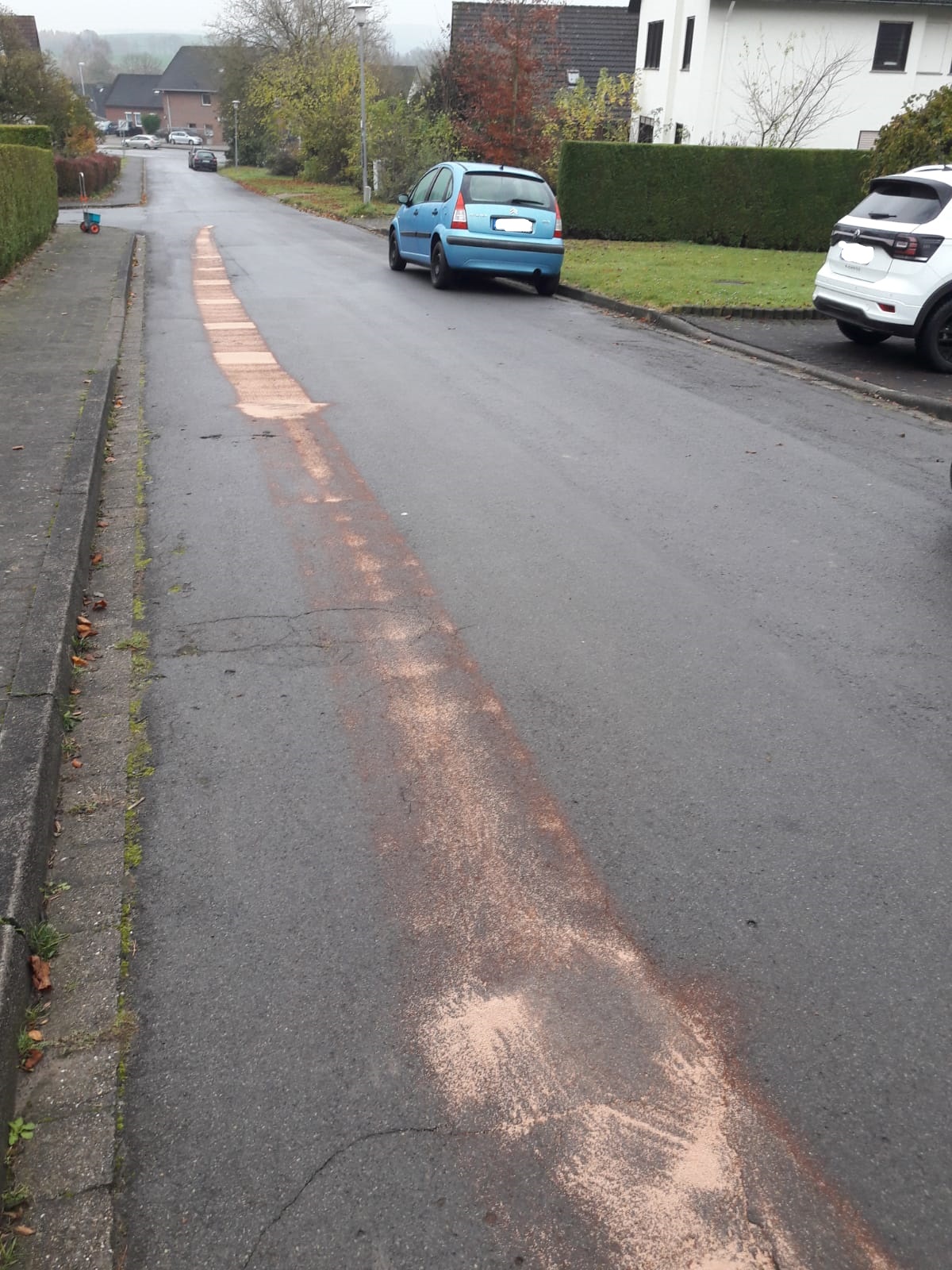 Durch einen Defekt an einem PKW wurden wir erneut in die Straße Am Hankenberg gerufen. Vor Ort stellten wir eine kürzere Ölspur fest, die mit Öl-Bindemittel ab gestreut wurde.