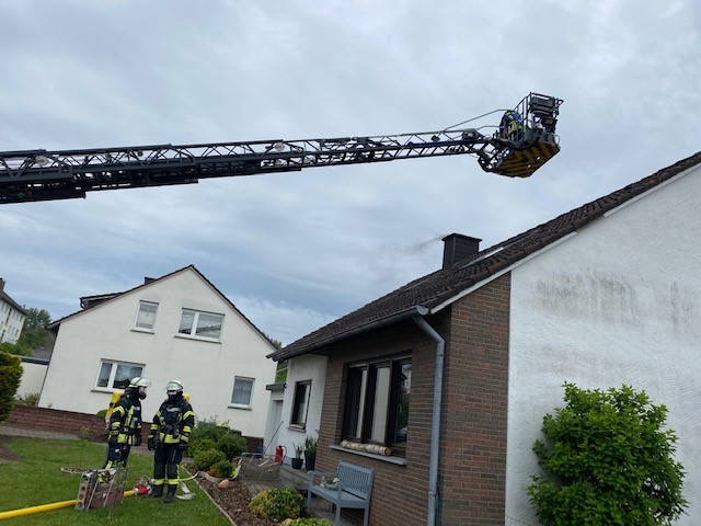 Eingesetzte Fahrzeuge: ELW 1 Blomberg, LF 20 Blomberg, HLF 20 Blomberg, DLK 23-12 Blomberg, Polizei, Schornsteinfeger