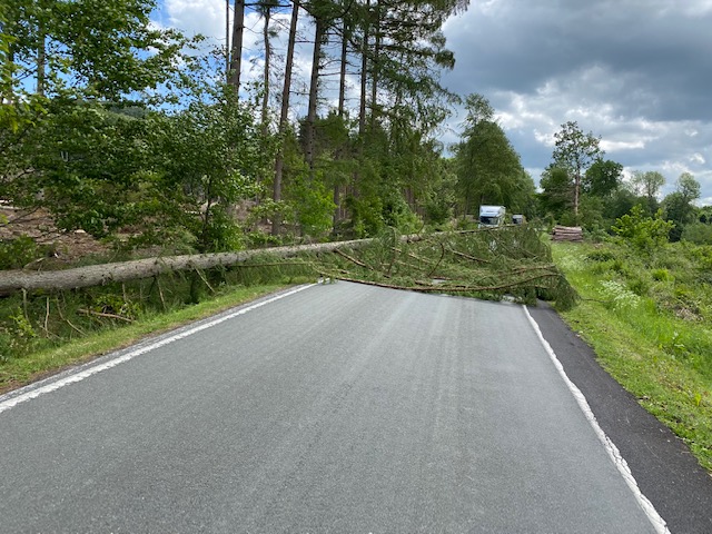 Aufgrund der starken Windböen war eine Fichte auf den Siekholzer Weg gestürzt.