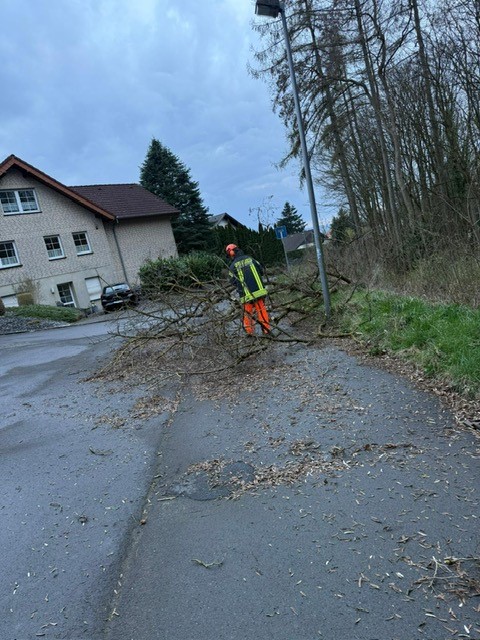 Aufgrund der Sturmböen am gestrigen Tag kam es zu einem Einsatz in der Straße Am Hamburger Berg. Dort war ein Baum umgestürzt, dessen Baumkrone in die Fahrbahn ragte. Wir zerteilten den Baum mit der Motorsäge und reinigten die Fahrbahn.