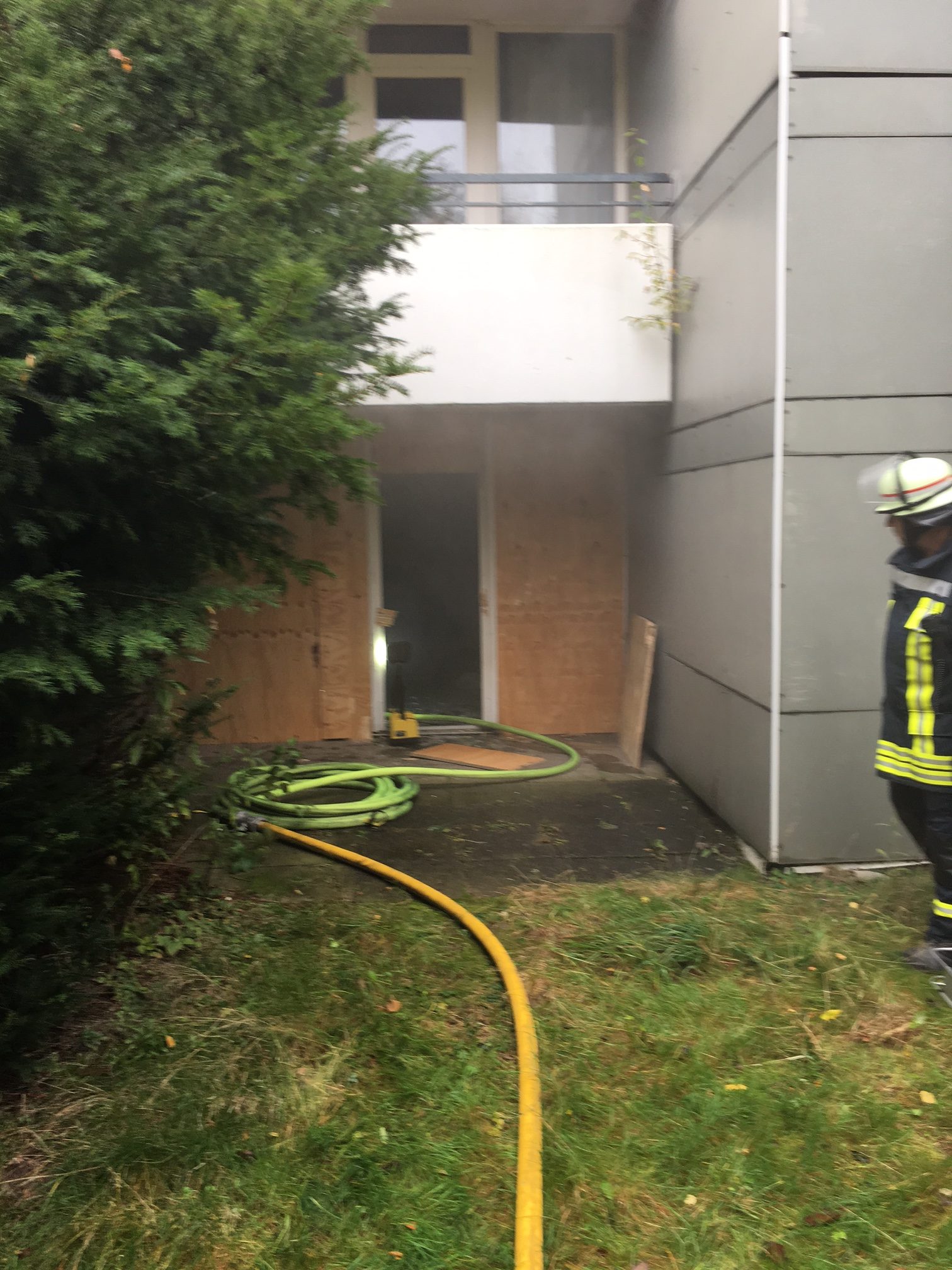 In der ehemaligen AWO in der Ulmenallee 40 kam es aus bisher unklaren Gründen zu einem Zimmerbrand. Wir erkundeten zunächst das Gebäude von außen und konnten eine starke Rauchentwicklung im Erdgeschoss feststellen. Die die Fenster und Türen aus Einbruchsschutz mit Holzplatten verschraubt waren mussten wir uns erst mal Zutritt verschaffen. Der Angriffstrupp ging Anschließend zur Brandbekämpfung mit einem C-Rohr vor. Es brannte offensichtlich ein Stuhl in einem Zimmer. Wir löschten das Feuer ab und leiteten dann umfangreiche Lüftungsmaßnahmen ein, da es zu einer starken Rauchentwicklung im gesamten Erdgeschoss kam. Zur Brandursache konnte die Polizei vor Ort noch keine Angaben machen, jedoch wurden Einbruchsspuren festgestellt. Wer Hinweise dazu machen kann wendet sich bitte an die Polizei.