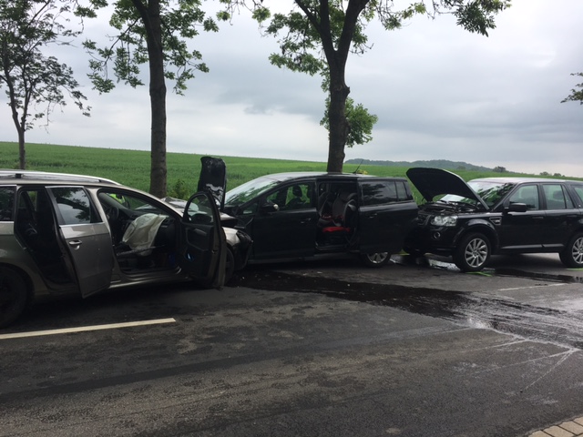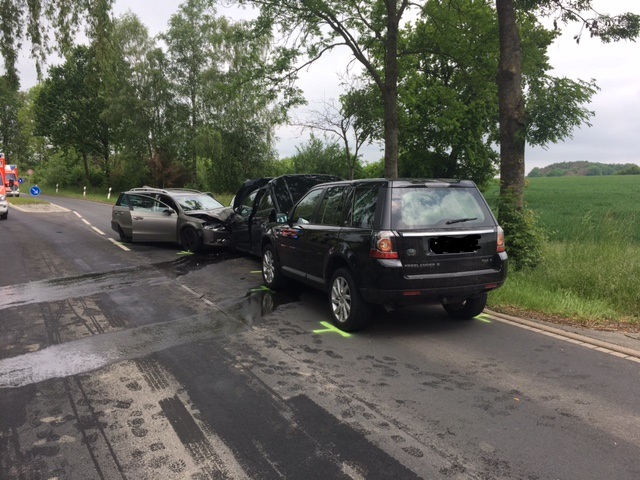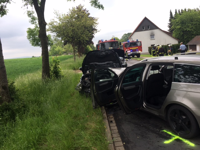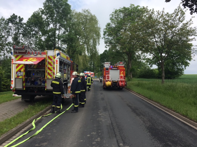 Aus ungeklärter Ursache kam es auf der Vahlhauser Straße Ortsausgang Brüntrup in Richtung Vahlhausen zu einem Verkehrsunfall mit 5 Verletzten und 3 PKW´s, darunter auch 2 Kinder. Bei eintreffen an der Einsatzstelle bestätigte sich die erste Meldung nicht das eine Person eingeklemmt ist. Wir stellten den Brandschutz sicher und Unterstützten den Rettungsdienst. Die Vahlhauser Straße war komplett gesperrt und der Verkehr wurde über Cappel sowie über Fissenknick abgeleitet. Nach dem alle Patienten versorgt und abtransportiert waren unterstützen wir die Polizei bei der Unfallaufnahme. Um nachher den Unfallhergang genau nachvollziehen zu können wurde das so genannte Monobild-Verfahren angewandt wofür es notwendig ist Bilder aus der Vogelperspektive (vom Fahrzeug-Dach) zu machen. Nach der Unfallaufnahme wurden alle drei Fahrzeuge abgeschleppt und die Straße konnte gereinigt sowie mit Ölbindemittel ab gestreut werden. Im Einsatz waren ca. 30 Einsatzkräfte der Feuerwehr sowie 16 Einsatzkräfte des Rettungsdienstes.