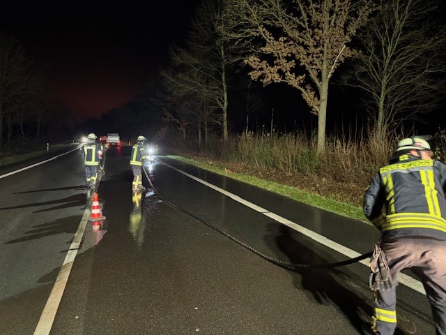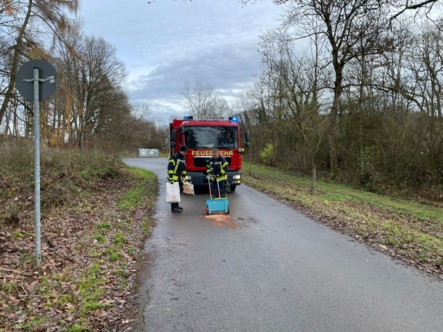 In der Ulmenallee wurde eine Ölspur gemeldet. Diese wurde mit Bindemittel abgestreut und die Einsatzstelle wurde der Polizei übergeben.