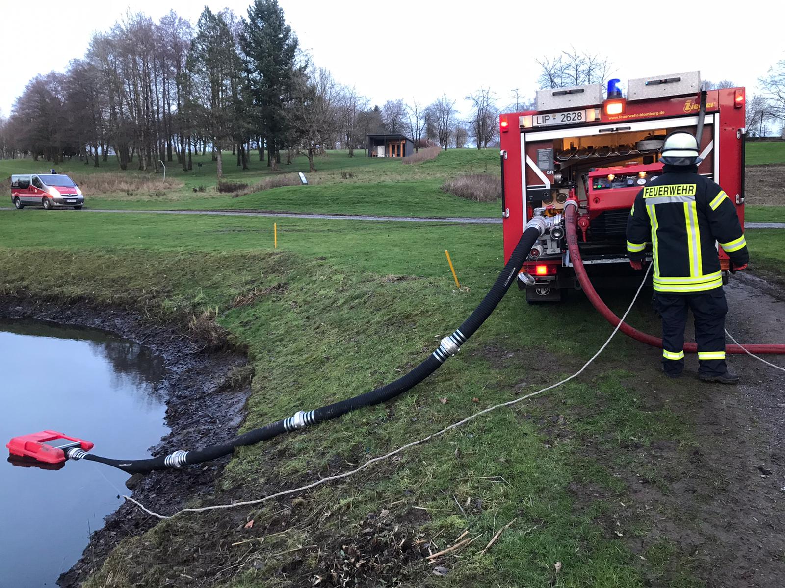 Eingesetzte Fahrzeuge: ELW 1 Blomberg, HLF 20 Blomberg, LF 20 Blomberg, DLK 23-12 Blomberg, TSF-W Blomberg, TLF 4000 Blomberg, Polizei