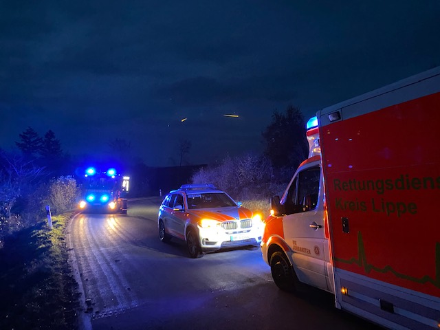 Eingesetzte Fahrzeuge: MLF Eschenbruch, MTF Eschenbruch, 1. RTW Blomberg, NEF Bad Pyrmont, Notfallseelsorger, Polizei