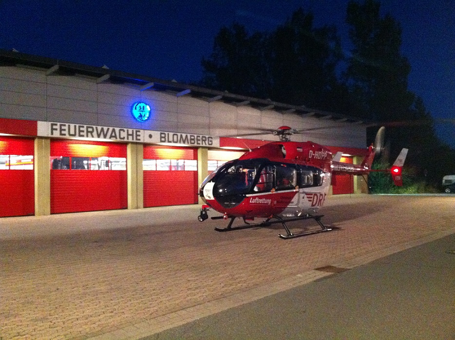 Die Leitstelle hatte telefonisch darum gebeten, den Übungsplatz an der Feuerwache Blomberg auszuleuchten. Grund war die Landung des Rettungshubschraubers „Christoph Niedersachsen“ aus Hannover, der einen Notfallpatienten nach Göttingen in eine Spezialklinik fliegen musste.