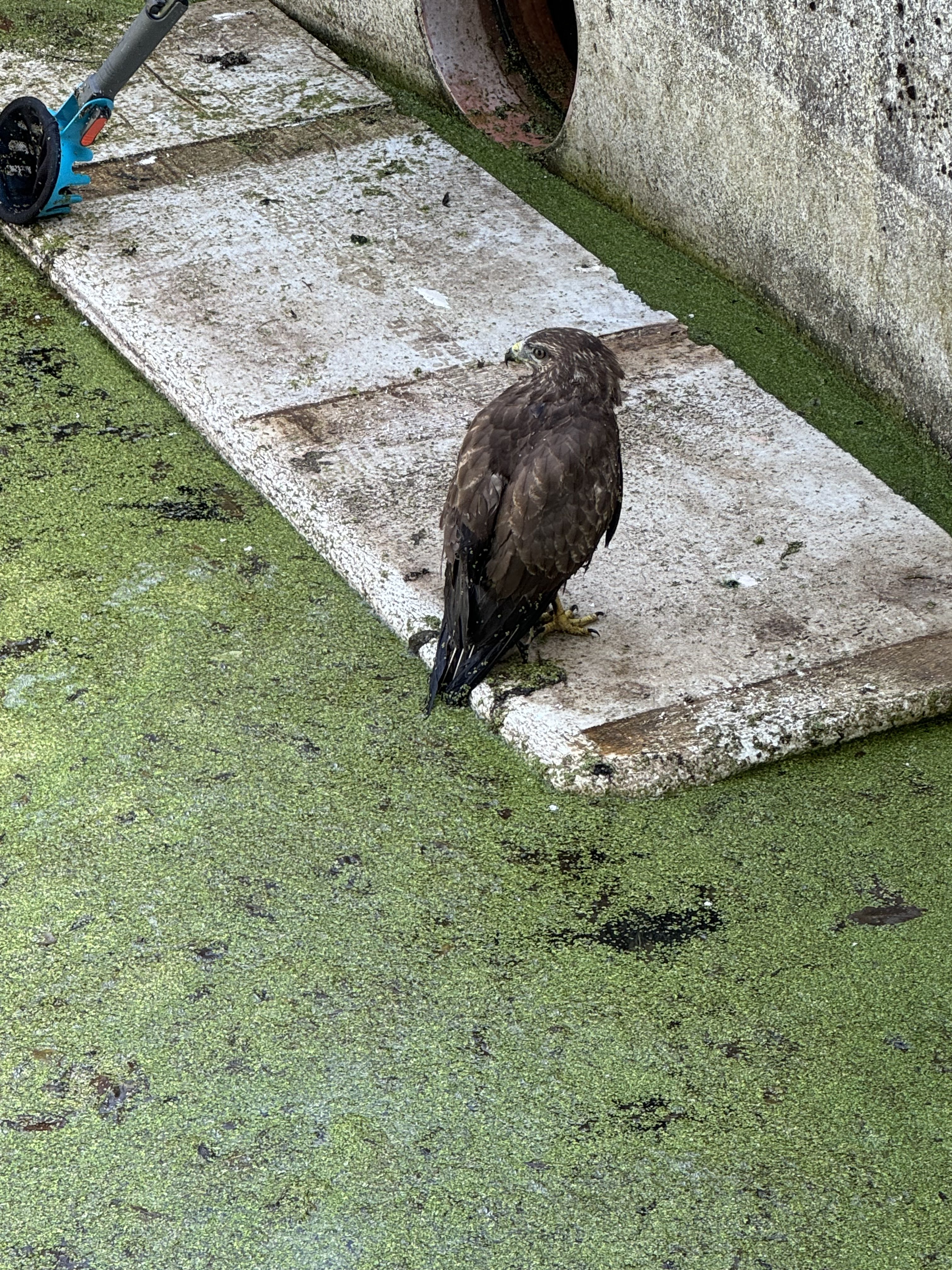 In Blomberg-Donop war seit Mittwoch ein Mäusebussard in einen Güllebehälter gefangen. Vermutlich wollte der Mäusebussard ein anderes Tier fangen, kam dabei aber ins Wasser des Güllebehälters und konnte durch die nassen Flügel nicht mehr aus eigener Kraft herausfliegen. Die Besitzer des Hofes hatten dem Tier schon ein Brett hineingelegt sodass der Bussard aus dem Wasser sich retten konnte. Am heutigen Tage alarmierte der Besitzer nun schlussendlich die Feuerwehr. Das Tier war schon sichtlich erschöpft und wäre aus eigener Kraft nicht aus dem Behälter herausgekommen. Mit der Drehleiter und deren Knickarm gelang es das Tier zu packen und in einen Karton zu packen. Anschließend ging alles sehr schnell und das Tier, das offensichtlich unverletzt war, wurde zur Adlerwarte nach Berlebeck verbracht wo es nun wieder aufgepäppelt wird. Hoffen wir das es dem Bussard schnell wieder besser geht und er ausgewildert werden kann.