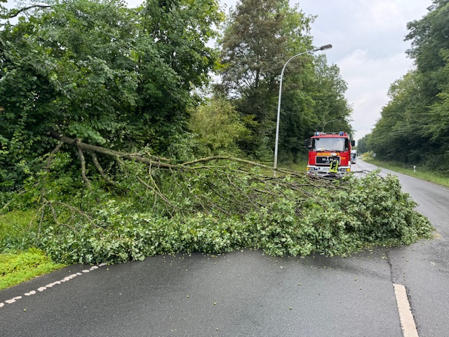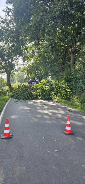 Gestern am späten Nachmittag wurde die Löschgruppe Herrentrup nach Höntrup alarmiert. Dort war ein Baum auf die Fahrbahn Am Königsbach gefallen. Der Baum wurde mit der Motorsäge zerteilt und beiseite geräumt. Anschließend wurde die Fahrbahn gereinigt.