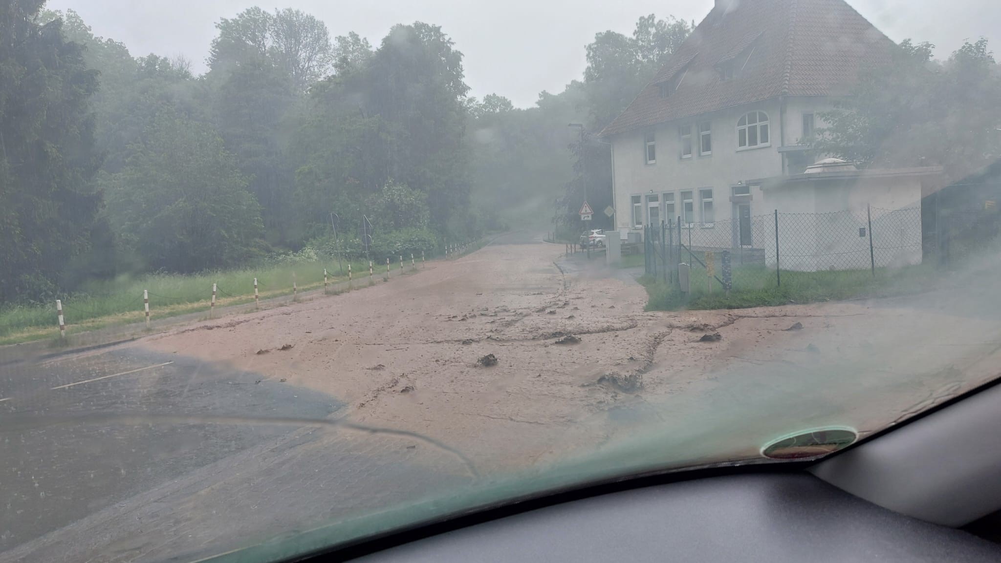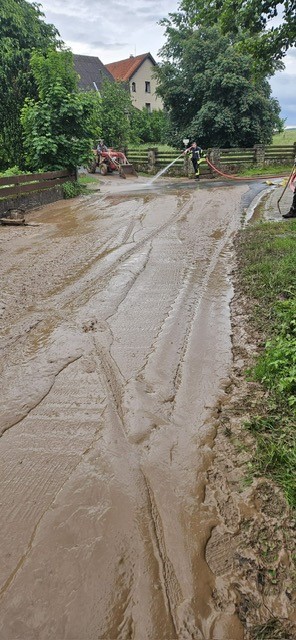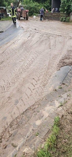 Im Ortsteil Herrentrup war die Straße Reckenbruch ebenfalls von Wasser und Schlamm betroffen. Hier sorgte die Löschgruppe Herrentrup dafür das die Fahrbahn gereinigt wurde und wieder befahrbar wurde.