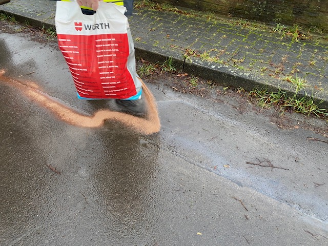 Die Einheit Herrentrup wurde gestern Abend zu einer längeren Ölspur auf den Spielberg gerufen. Die Spur erstreckte sich über den Spielberg, der Mittelstraße bis Steinsiek. Die Ölspur wurde mit abstumpfenden Mitteln ab gestreut und Warnbeschilderung aufgestellt. Da noch weitere Beschilderung sowie Ölbindemittel benötigt wurde, wurde der Löschzug Blomberg mit dem Gerätewagen-Logistik nach alarmiert.