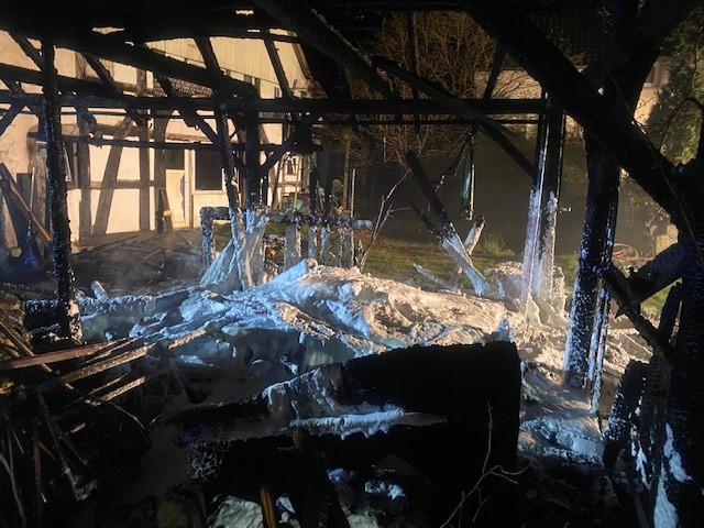 Auch Bürgermeister Dolle machte sich ein Bild von der Lage. Die Kriminalpolizei hat die Ermittlungen zur Brandursache aufgenommen. Insgesamt waren 45 Einsatzkräfte im Einsatz.