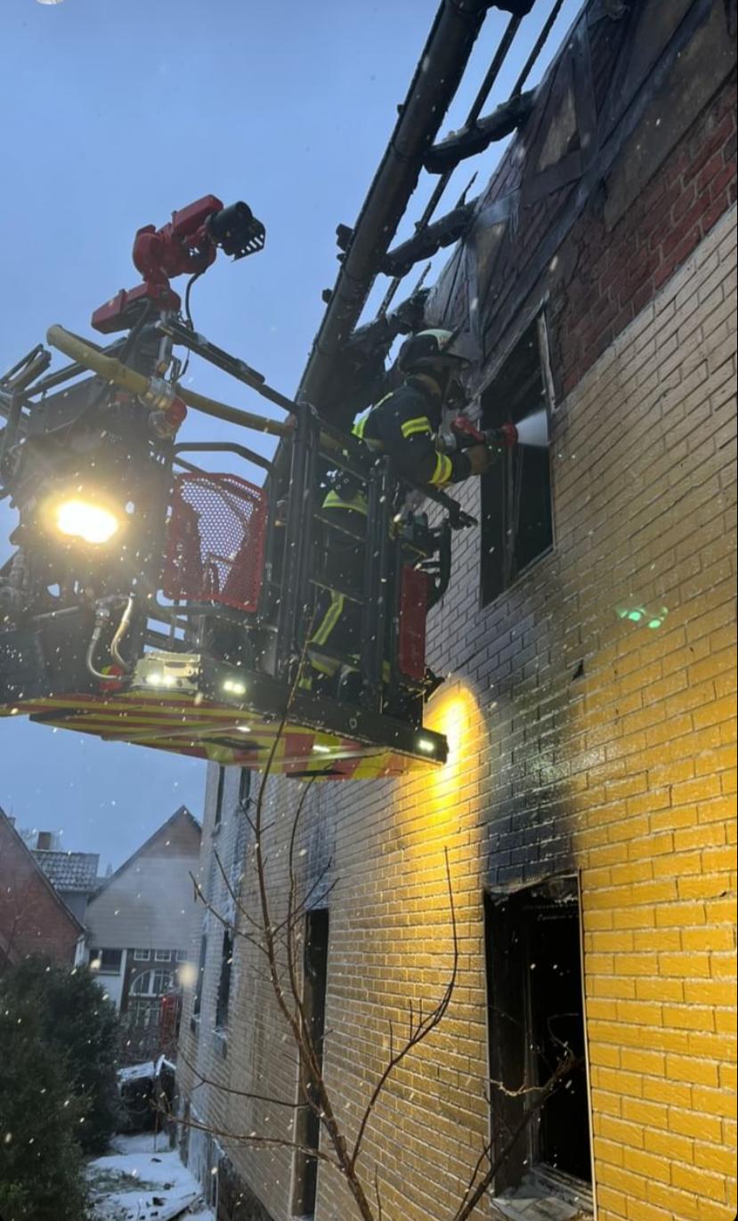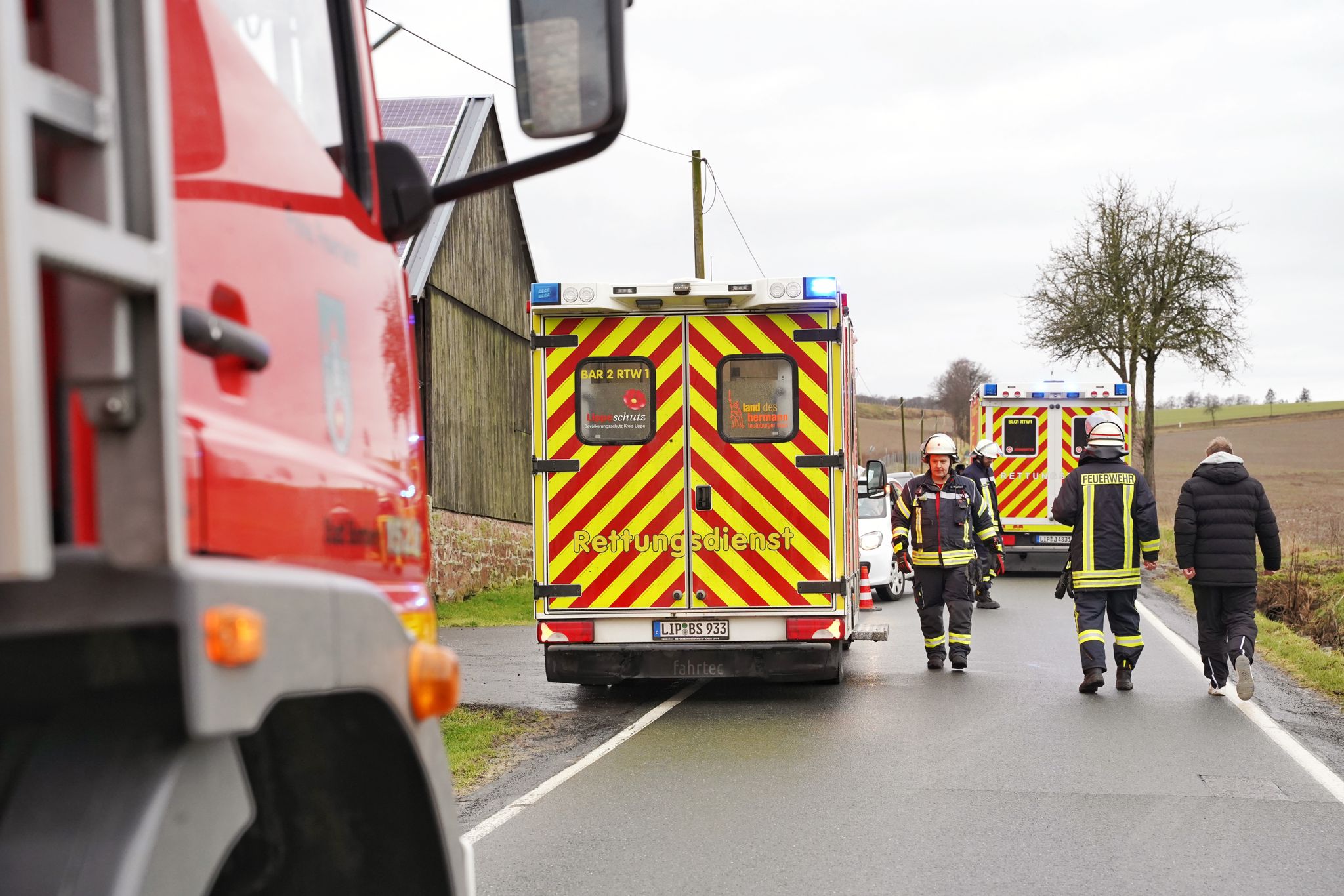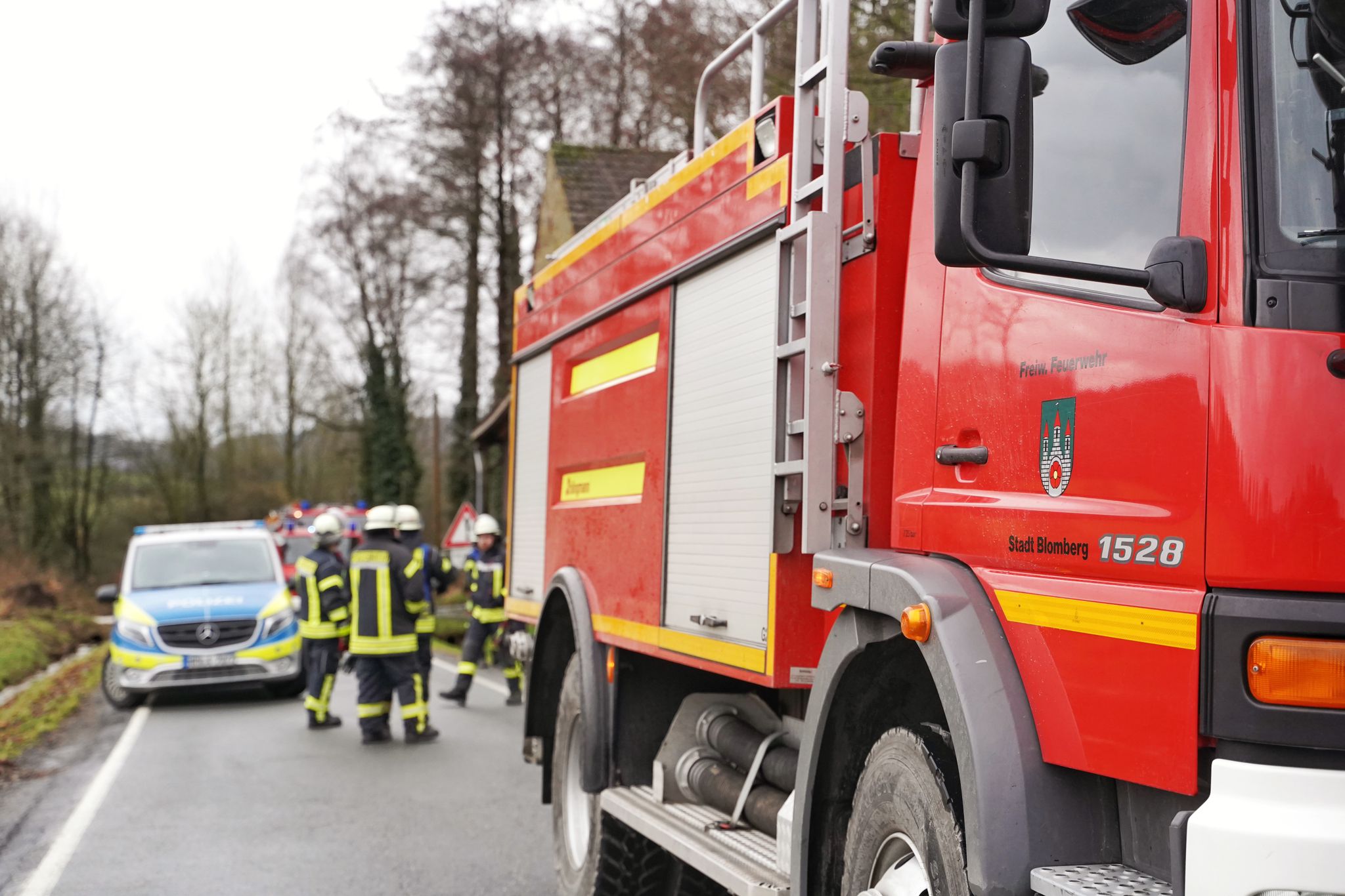 Eingesetzte Fahrzeuge: ELW 1 Blomberg, HLF 20 Blomberg, LF 20 Blomberg, TSF-W Blomberg, DLK 23-12 Blomberg, GW-L1 Blomberg, TLF 4000 Blomberg, MLF Herrentrup, 1. RTW Blomberg, RTW Alverdissen, KTW-B JUH Rufbereitschaft Blomberg, Polizei