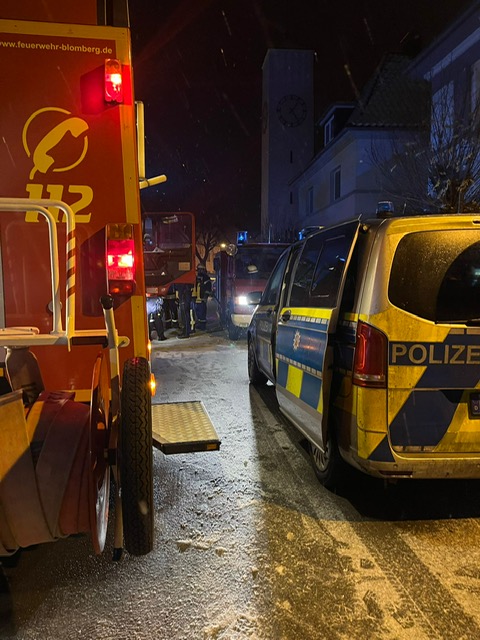 Eingesetzte Fahrzeuge: ELW 1 Blomberg, HLF 20 Blomberg, LF 20 Blomberg, DLK 23-12 Blomberg, RTW Steinheim