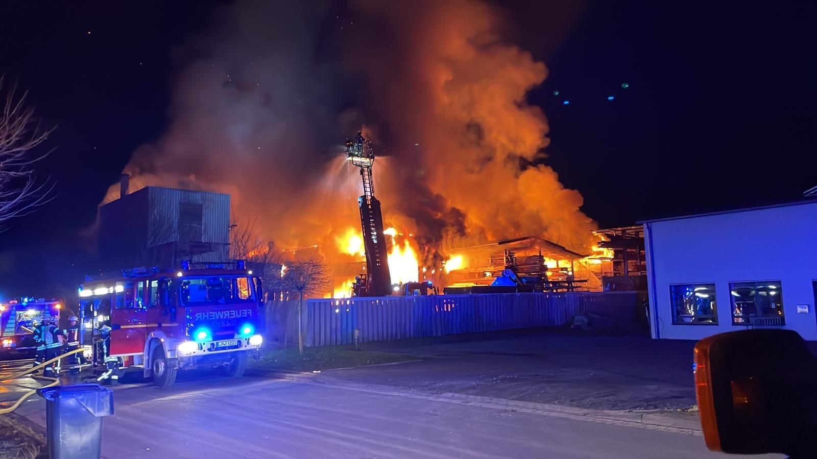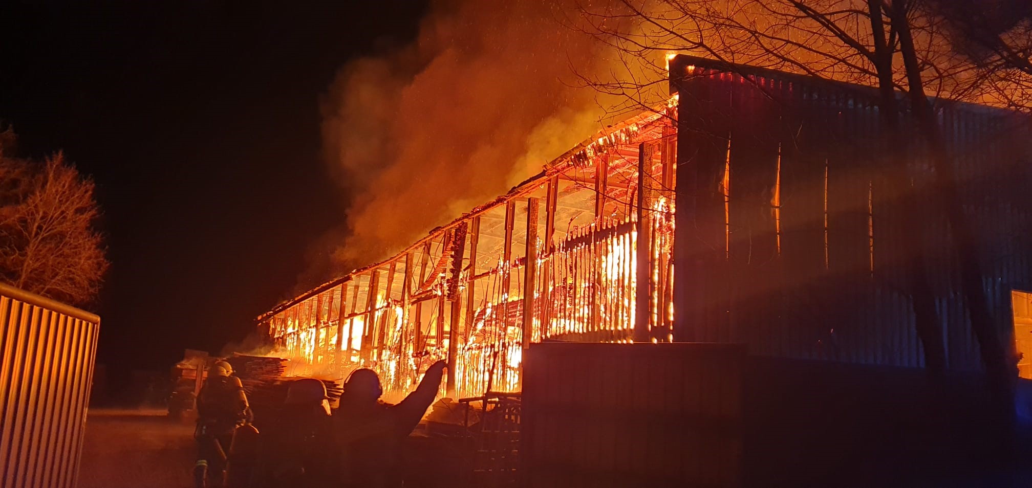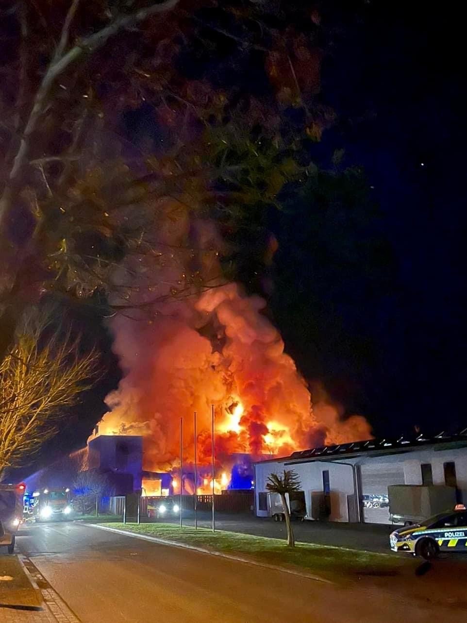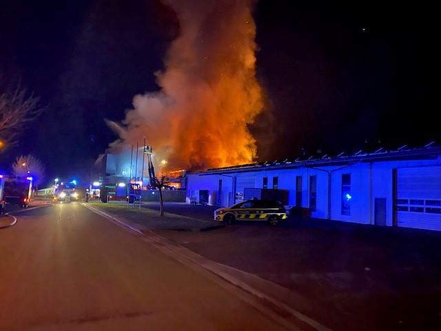 Gestern Abend wurden zunächst der Löschzug Blomberg und die Löschgruppe Herrentrup zu einem Feuer gerufen. Da sich der Gewerbebetrieb in direkter Nähe zur Feuerwache befindet, konnte bei Eintreffen an der Feuerwache schon Flammenschein gesichtet werden, und das Einsatzstichwort wurde umgehend auf Feuer 4 erhöht. Was zur Folge hatte das weitere Einheiten dazu alarmiert wurden. In der Spitze befanden sich bis zu 160 Einsatzkräften an der Einsatzstelle. Das Feuer wurde mit 3 Wenderohren, 1 Wassermonitor und zwei B-Rohren sowie 7 C-Rohren bekämpft. Zum Glück wurde niemand verletzt. Es wurden insgesamt 5 Abschnitte gebildet. 3 Abschnitte führten eine Brandbekämpfung durch an der rechten Seite, vorderen Seite sowie der linken Seite des Gebäudes. Ein weiterer Abschnitt bildete die Wasserversorgung welche vom Diestelbach, einem Teich auf der Zentralkläranlage sowie dem Hydranten-Netz aufgebaut wurde. Der 5. Abschnitt bildete der Rettungsdienst mit einem Rettungstransportwagen, einem Notarzteinsatzfahrzeug sowie einem Krankentransportwagen der Rufbereitschaft der Johanniter Unfall Hilfe Blomberg, sowie des Regelrettungsdienstes Kreis Lippe. Um die zum Teil weiten Wege bis zur Wasserentnahmestelle zu überbrücken wurde ein Schlauchwagen mit 2000m B-Leitung angefordert. Weitere Tanklöschfahrzeuge aus Barntrup und Horn Bad Meinberg sowie die beiden Drehleitern aus Extertal und Horn Bad Meinberg wurden in den Abschnitten eingesetzt. Der Grundschutz der Großgemeinde Blomberg wurde durch die Löschgruppen Großenmarpe und Donop an der Hauptwache Blomberg sichergestellt, um für parallel Einsätze gewappnet zu sein. Der städtische Baubetriebshof unterstützte uns tatkräftig mit Personal und Streusalz, da das gefrierende Löschwasser zur Rutschpartie wurde. Auch Bürgermeister Christoph Dolle sowie der Kreisbrandmeister Wolfgang Kornegger erschien an der Einsatzstelle und machte sich ein Bild vom Einsatzgeschehen. Im weiteren Einsatzverlauf wurde ein Fachberater des Technischen Hilfswerks angefordert, um dem Einsatzleiter beratend zur Seite zu stehen, und um abzuklären welche Möglichkeiten das THW hat uns mit Fahrzeugen zu unterstützen. Daraufhin wurde ein Radlader sowie ein Bagger vom THW Bielefeld und Bünde sowie die Bergungsgruppe des THW Detmold angefordert. Zusätzlich zu dem Bagger und Radlader des THW wurde ein Teleskoplader des Kreises Lippe angefordert um Brandgut auf eine Freifläche zu befördern. Aufgrund der langen Einsatzdauer war es nötig die zum Teil erschöpften Einsatzkräfte durch frisches Personal auszutauschen. Hierfür wurden das Deutsche Rote Kreuz Ortsverband Blomberg sowie Detmold, der Löschzug Detmold Mitte sowie die Löschgruppe Lieme, Wöbbel, Brakelsiek und der Einheit Schwalenberg hinzugezogen. Im Laufe der Nacht- und Morgenstunden war das THW damit beschäftigt Zugänge in die zum Teil einsturzgefährdeten Bereiche für Nachlöscharbeiten zu ermöglichen. Die Polizei war ebenfalls mit 2 Fahrzeugen sowie der Kriminalpolizei zur Brandursachenermittlung vor Ort. Der Ermittlungen dauern zurzeit noch an. Gegen Sonntagnachmittag wurde der Einsatz vor Ort beendet und die Einsatzbereitschaft wurde wiederhergestellt. Nach so einem Großbrand bedeutet das auch immer eine riesen Materialschlacht. Um einen Reibungslosen Atemschutzeinsatz gewährleisten zu können war der Kreis Lippe mit dem Abrollbehälter Atemschutz vor Ort um direkt leere Atemluftflaschen zu befüllen. Da zur Brandbekämpfung auch Schaummittel als Netzmittel eingesetzt wurde, lieferte der Kreis Lippe vorsorglich 2000l Schaummittel, welches aber nicht mehr zum Einsatz kam.