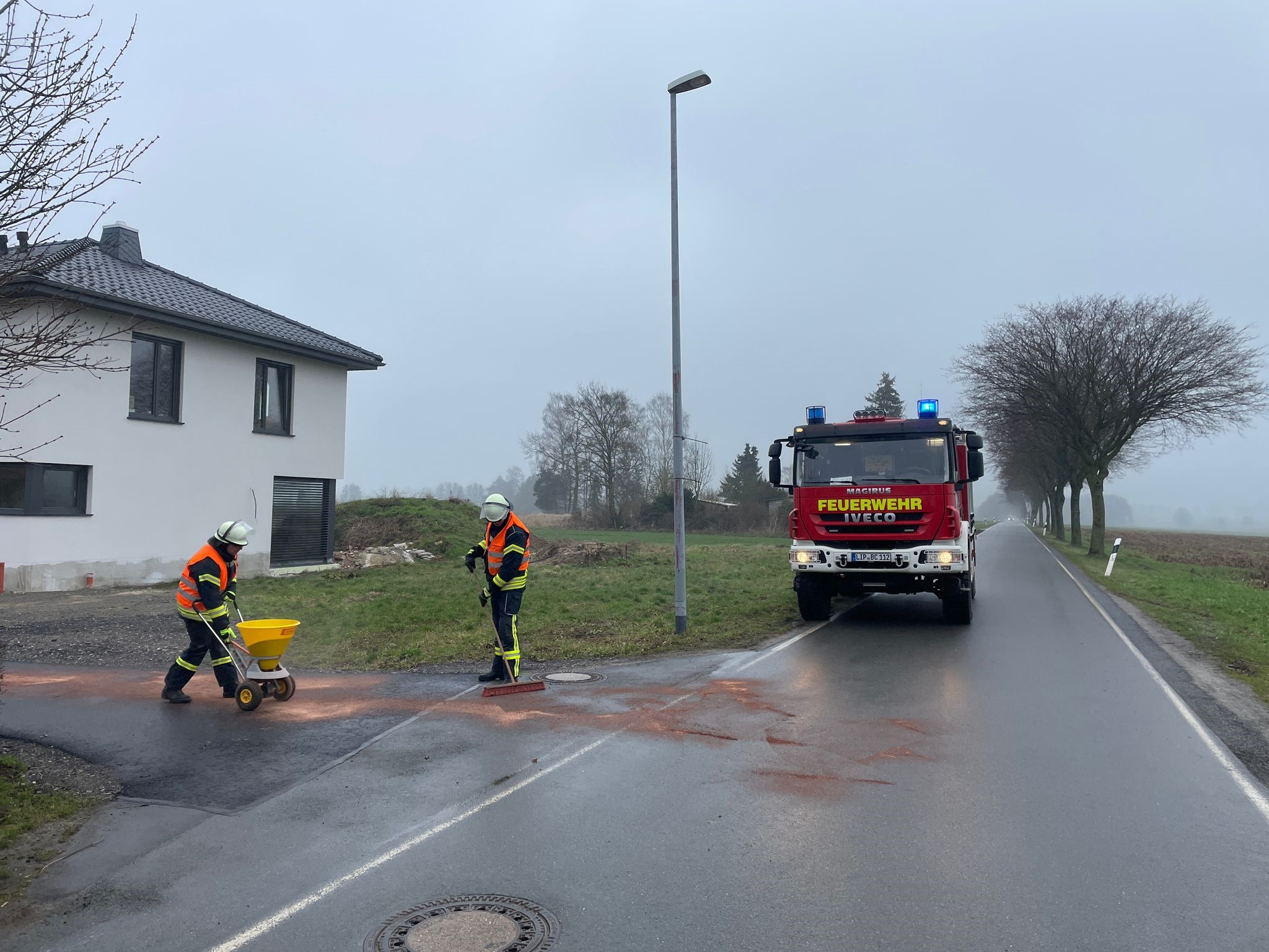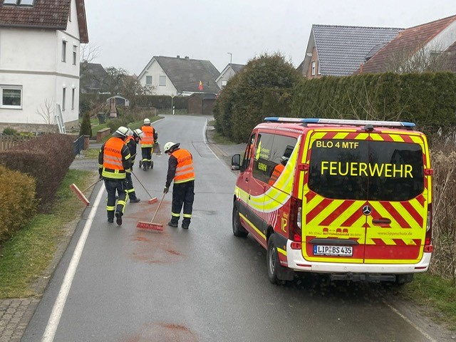 Eingesetzte Fahrzeuge: ELW 1 Blomberg, DLK 23-12 Blomberg, HLF 20 Blomberg, LF 20 Blomberg, RW Blomberg, GW-L1 Blomberg, GW-N Blomberg, TSF-W Blomberg, MTF Blomberg, TLF 4000 Blomberg, MLF Eschenbruch, MTF Eschenbruch, MLF Herrentrup, MTF Herrentrup, LF 20 KatS Cappel, Dekon-P Cappel, MTF Cappel, HLF 10 Großenmarpe, ELW 1 Donop, TSF-W Donop, TLF 4000 Barntrup, SW 2000 Barntrup, LF 20 Detmold-Mitte, MTF Detmold-Mitte, Teleskoplader Kreis Lippe, DLK 23-12 Extertal, TLF 4000 Horn- Bad Meinberg, DLK 23-12 Horn-Bad Meinberg, LF 20 Lieme, LF 10 Wöbbel, MTF Wöbbel, TSF-W Brakelsiek, GW-L2 mit Beleuchtungsanhänger Schwalenberg, Kreisbrandmeister, Abrollbehälter Atemschutz Kreis Lippe, GW-L1 Kreis Lippe, 1. RTW Blomberg, 2. NEF Detmold, KTW-B JUH Blomberg, KTW-B DRK Blomberg, KTW-B DRK Detmold, Energieversorger, Bürgermeister, Fachberater THW mit Führungsfahrzeug THW Detmold, Bergungsgruppe THW Detmold, Radlader THW Bielefeld, Bagger THW Bünde, 2x Polizei, 1x Kriminalpolizei, Baubetriebshof Stadt Blomberg mit diversen Streufahrzeugen.