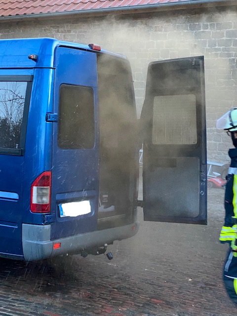 Aus bislang unbekanntem Grund kam es zu einem Brand in einem Transporter. Die Besitzer hatten blitzschnell reagiert und mit einem Gartenschlauch den Transporter von außen gekühlt. Zusätzlich bereitete man vor den Transporter, mit Hilfe eines Treckers, vom Gebäude wegzuziehen. Das erst-eintreffende HLF 10 von Großenmarpe startete umgehend die Brandbekämpfung mit der Schnellangriffseinrichtung. So konnte größerer Schaden an Gebäuden vermieden werden. Der Transporter ist im inneren total zerstört. Gut, dass die Besitzer so schnell und richtig reagiert haben.