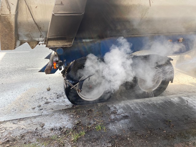 Durch einen technischen Defekt an einem LKW, brannten an der Hinterachse Reifen.
