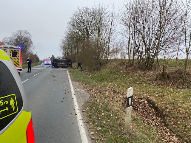 Eingesetzte Fahrzeuge: GW-L1 Blomberg, RW Blomberg, 1. RTW Blomberg, NEF Steinheim, 2x Polizei, Abschleppunternehmen