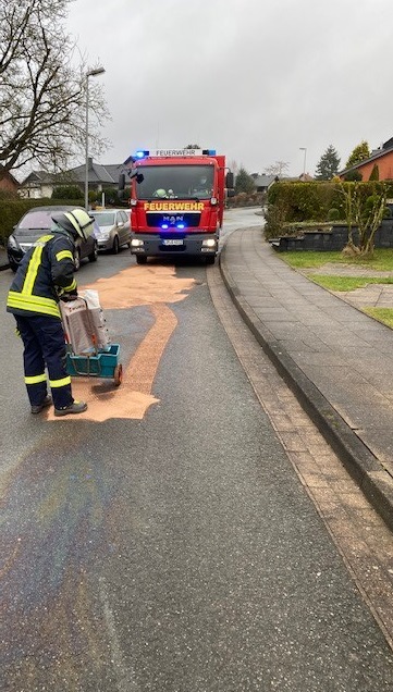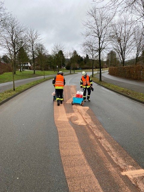 Am gestrigen Nachmittag wurde die Löschgruppe Herrentrup zu einer Ölspur alarmiert. Diese erstreckte sich von der Mittelstraße über den Spielberg bis nach Belle. Daraufhin wurde die Freiwillige Feuerwehr Horn Bad Meinberg ebenfalls alarmiert. Die Ölspur wurde mit Ölbindemittel ab gestreut und anschließend wiederaufgenommen. Warnbeschilderung wurde aufgestellt. Anschließend wurde die Einsatzstelle durch die Polizei abgenommen und frei gegeben.